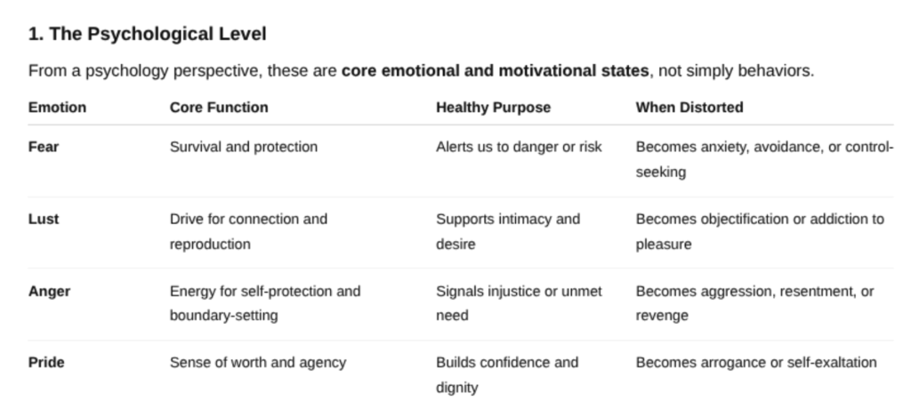 Perfect love doesn’t just cast out fear, it heals lust, softens anger, and humbles pride.